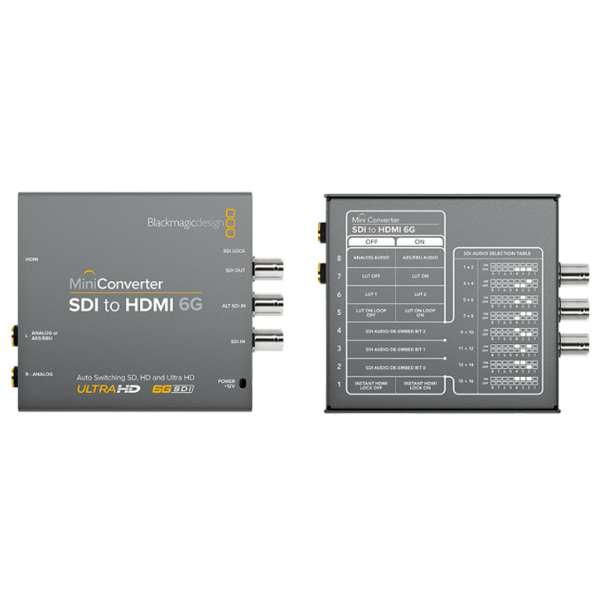 Các cài đặt của Mini Converter được điều khiển bằng cách sử dụng các công tắc DIP tích hợp hoặc qua USB sử dụng phần mềm đi kèm cho các máy tính Max OS X hoặc Windows. Cổng USB cũng cho phép cập nhật firmware. Để cấp nguồn cho thiết bị, nguồn điện 12VDC cung cấp kèm theo bộ chuyển đổi ổ cắm quốc tế. Mini Converter SDI to HDMI 6G có kết nối âm thanh chuẩn với bộ chuyển đổi nhỏ hỗ trợ âm thanh SDI và HDMI được nhúng và một số kiểu máy cho phép bạn nhúng riêng hoặc âm thanh kỹ thuật số hoặc âm thanh kỹ thuật số được nhúng riêng.
